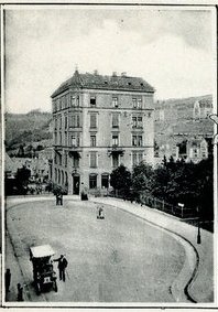 [...] Zur Linken lohnt es sich, auf unsre Stadt hinabzuschauen und der Stitzenburg zu gedenken, welche nicht weit von hier bereits um 1770 als Gartenwirtschaft des Uhrmachers Stitz beliebt gewesen ist. Ursprünglich ein Landhaus, das "Kleine Solitude" oder "Grüneisens Solitude" geheißen hat, ließ Herr Stitz eine Wirtschaft daraus machen, wo man im Freien sitzen und von einer Gartenterrasse aus, inmitten von Weinbergen, ins blaudunstige Nesenbachtal schauen konnte, während Kinder sich in einer Schaukel wiegten. Ein Vesper, sagen wir mit Kräuterkäse und mit Butter, gab dem Bodeng'fährtle des Weines und des Mostes die richtige Unterlage ...