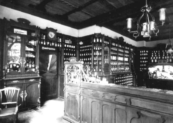 Die unter Denkmalschutz stehende Stitzenburg-Apotheke besitzt eine der wenigen erhalten gebliebenen Ausstattungen im Jugendstil, der um 1895 aufkam und wie eine große Welle fast alle europäischen Länder und die Nord- und Südamerikas erfaßte. Die Einrichtung wurde Mitte 1901 von dem an der Stuttgarter Baugewerbeschule lehrenden Professor Albert Bauder entworfen und nach dessen Plänen von der damals für die Qualität ihrer Schreinerarbeiten weithin bekannten Stuttgarter Firma Brauer & Wirth, Kgl. Hoflieferanten, ausgeführt. Der um die Jahrhundertwende blühende Jugendstil, in der Fachliteratur auch "art nouveau" genannt, verlor bereits ab 1905 wieder an schöpferischer Kraft. So stellt er nur eine sehr kurze künstlerische Episode dar, was die Seltenheit der in diesem Stil gefertigten Geschäftseinrichtungen erklärt. Die Möbel der Offizin zeigen in den Rahmungen der Holzflächen die ursprünglich von pflanzlichem Rankenwerk inspirierten kurvigen Linienführungen dieser Kunstrichtung, die zu abstrakten Gebilden werden. Die für den Jugendstil bezeichnende dekorativ verstandene Verwendung von Glas spiegeln die sorgsam zurechtgeschnittenen Scheiben in Schrank, Tür und Handverkaufstisch wider. Das den Stil ebenso prägende Pflanzenornament tritt in den Formen der hölzernen Deckenträger und der floral dekorierten alten Lincrusta-Tapete deutlich hervor.